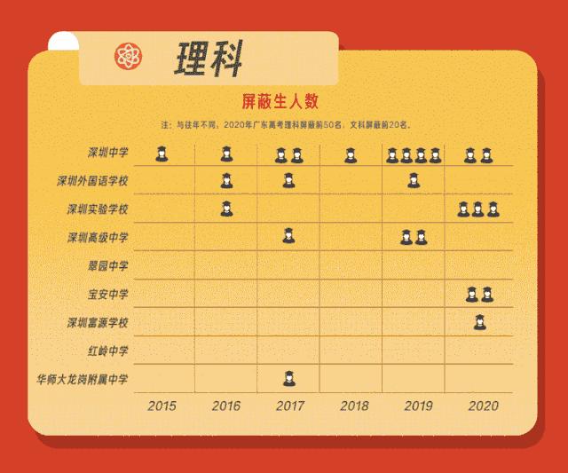 此外,珠海一中以9年29人的数量位列第二,而广深两地的老牌名校,省实、华附、深中9年累计高分考生数量均不足25人,不过,从今年成绩来看,华师附中已发起反攻。