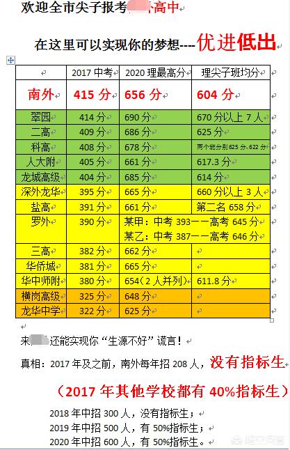 5、深中、宝中强调屏蔽生、清北,深实验、深高强调高优率、清北总数,深外强调保送。