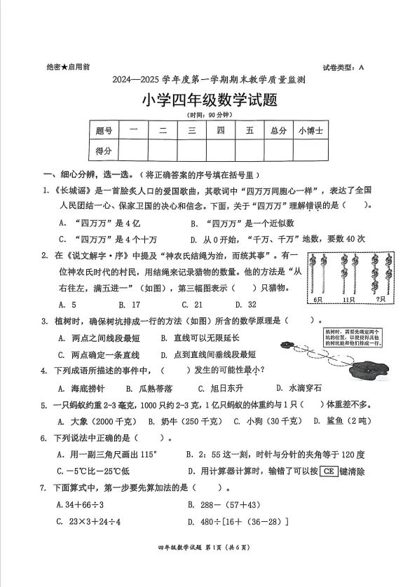 由于我无法直接访问具体的试卷内容,以下提供的是一份基于一般小学四年级上学期数学期末试卷的解析与备考指南。具体内容可能需要根据实际试卷进行调整。