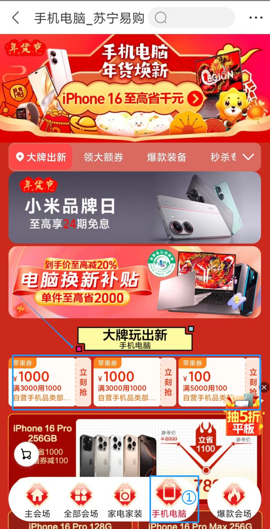 另外,有需要其他类型的券,如手机电脑专场的,可以点击底部的“手机电脑”,下划页面找到需要领取的券点击领取即可。